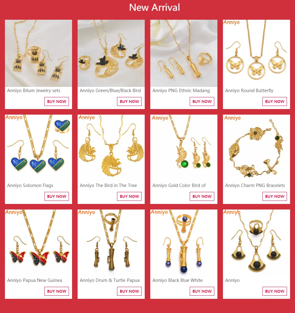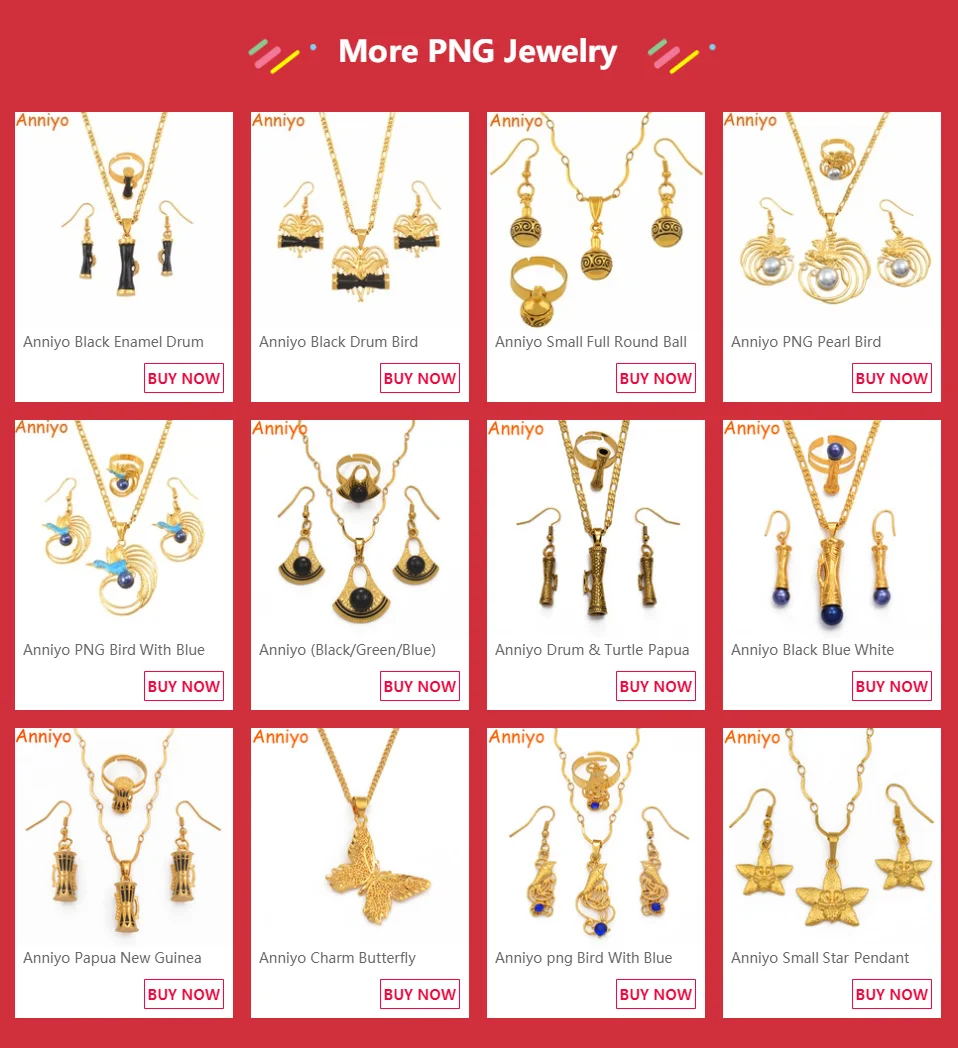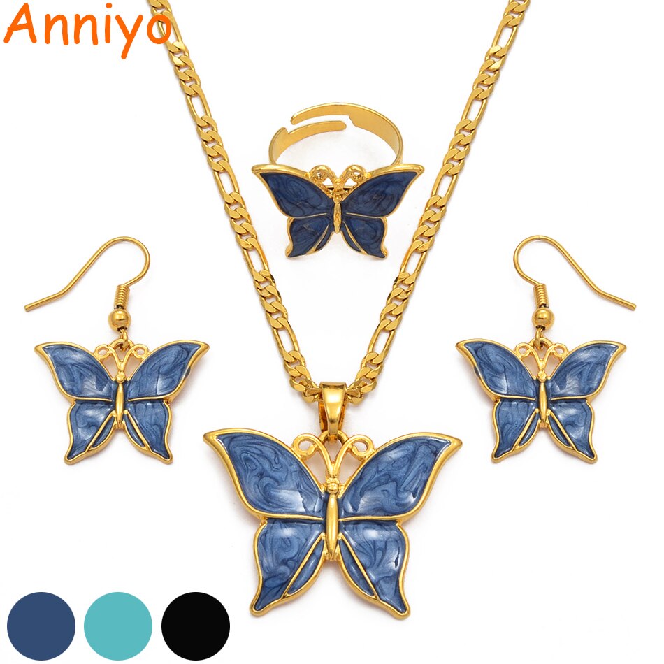 Anniyo Papua New Guinea Three Colors Butterfly Jewelry set Gold Color Necklace Earrings PNG Jewellery Gifts for Women #018016